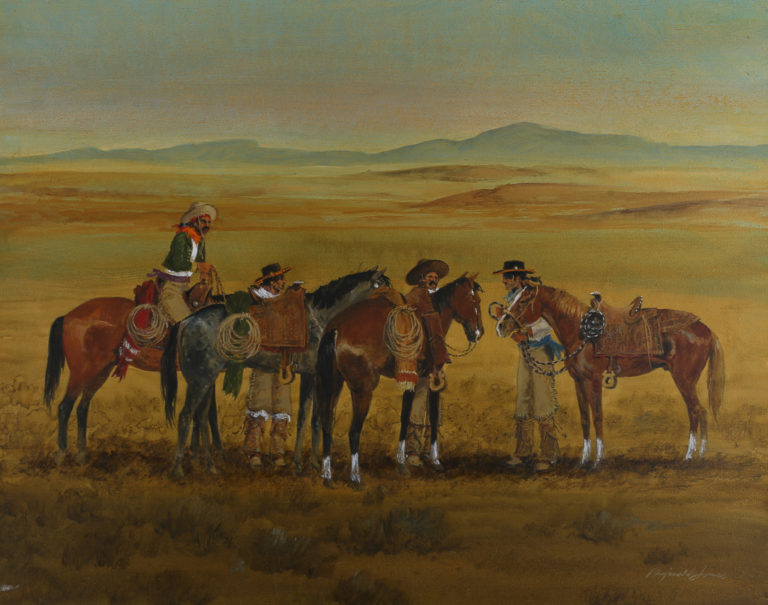 Two Cowboys and Dog – Early Morning Saddle Up